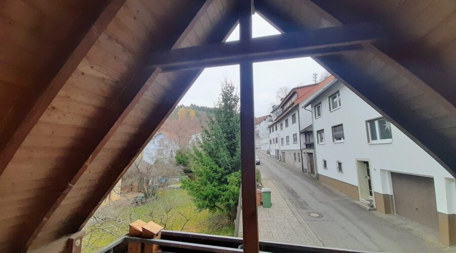 Im Obergeschoss gibt es einen Balkon mit Blick in den Ort.
