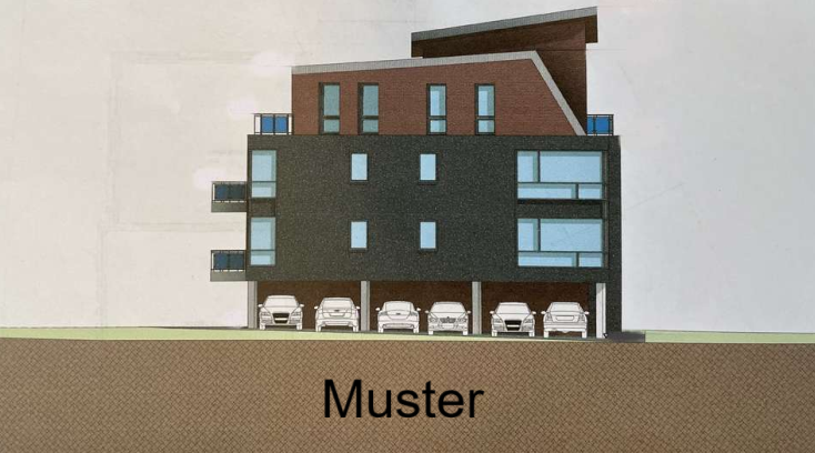 Geplant sind im Erdgeschoss ein Geschäftslokal, im 1. + 2. Obergeschoss jeweils 3 Wohnungen in einer Größe von ca. 60,00 m² bis 90,00 m².
